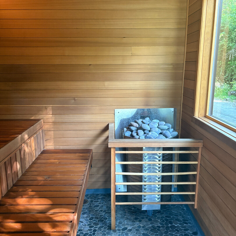 Sauna active from 11AM-4PM Little dipper is cold, perfect for a cold plunge Large pool is heated to warm/hot